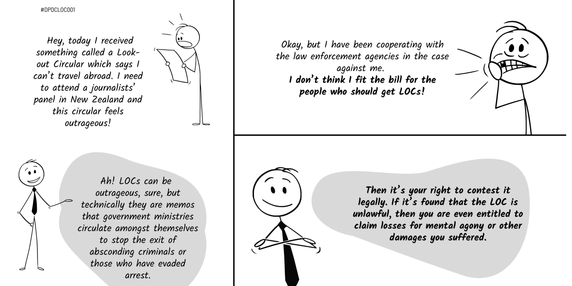Typically, authorities such as the Bureau of Immigration inform individuals about the LOC only at the airport or seaport while proscribing them from travelling abroad. So, at the time, an individual is left with no option but to miss the flight.